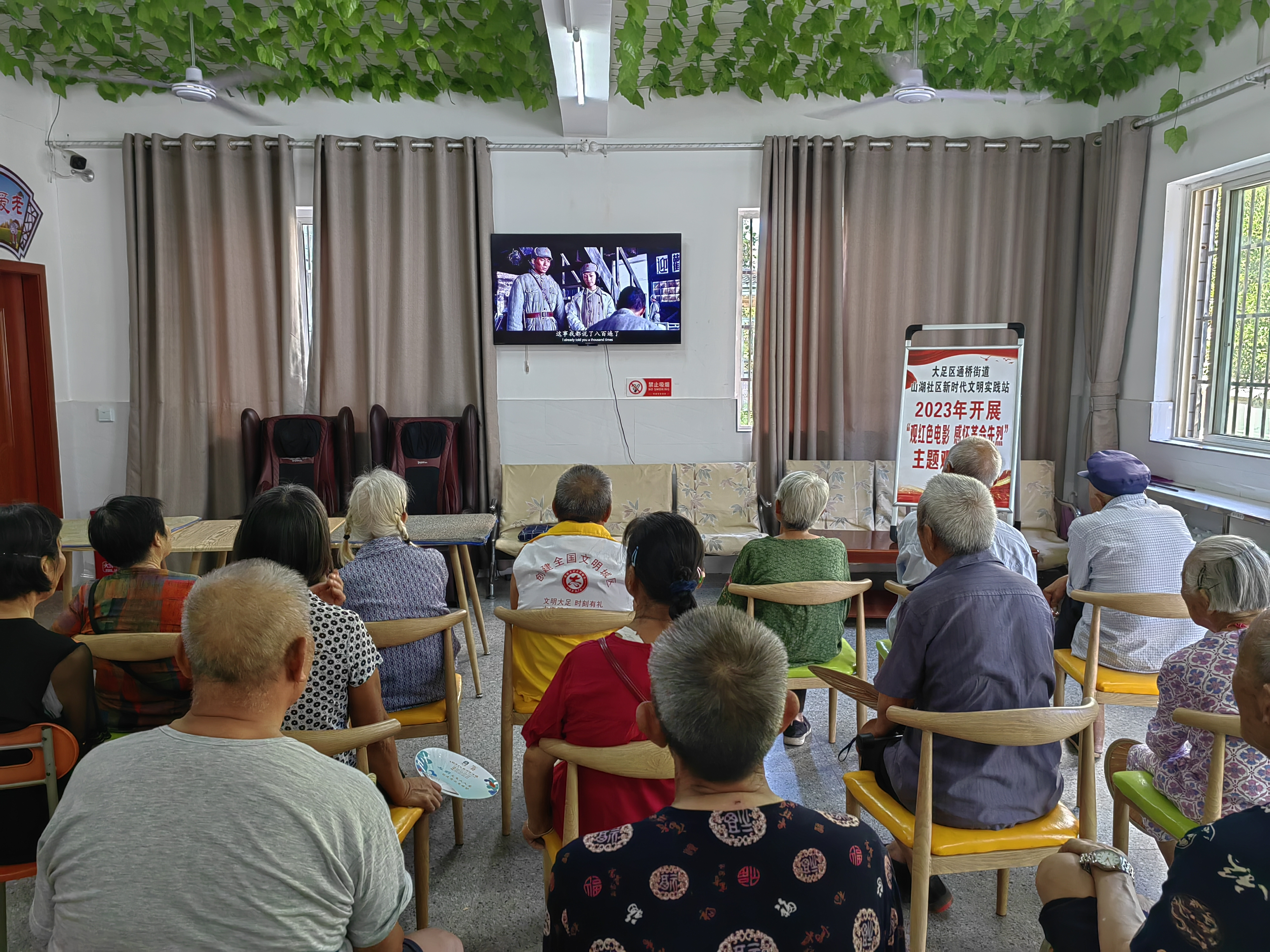 通桥街道山湖社区新时代文明实践站开展“观红色电影 感怀革命先烈”主题观影活动