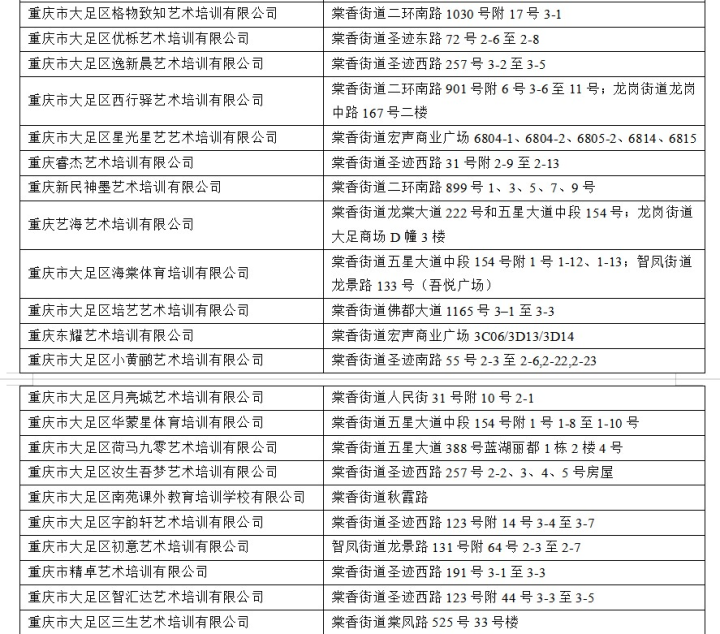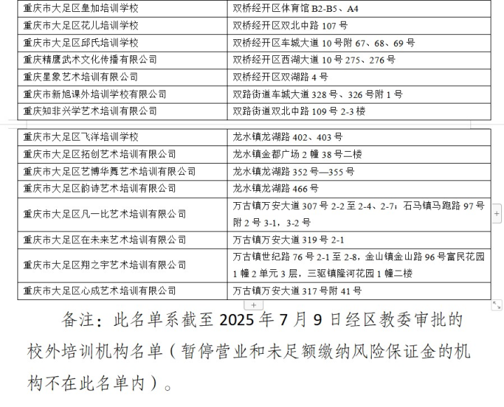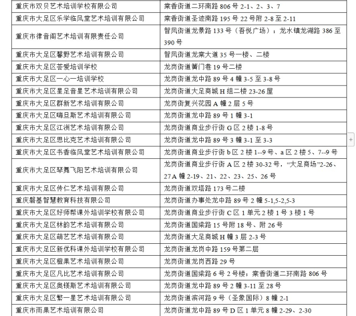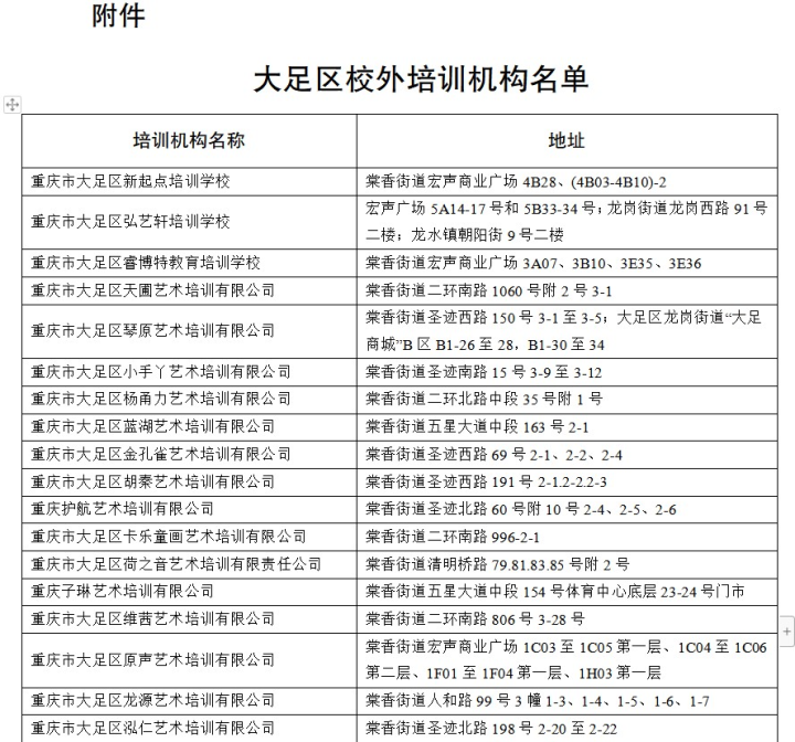 附件:大足区校外培训机构名单
