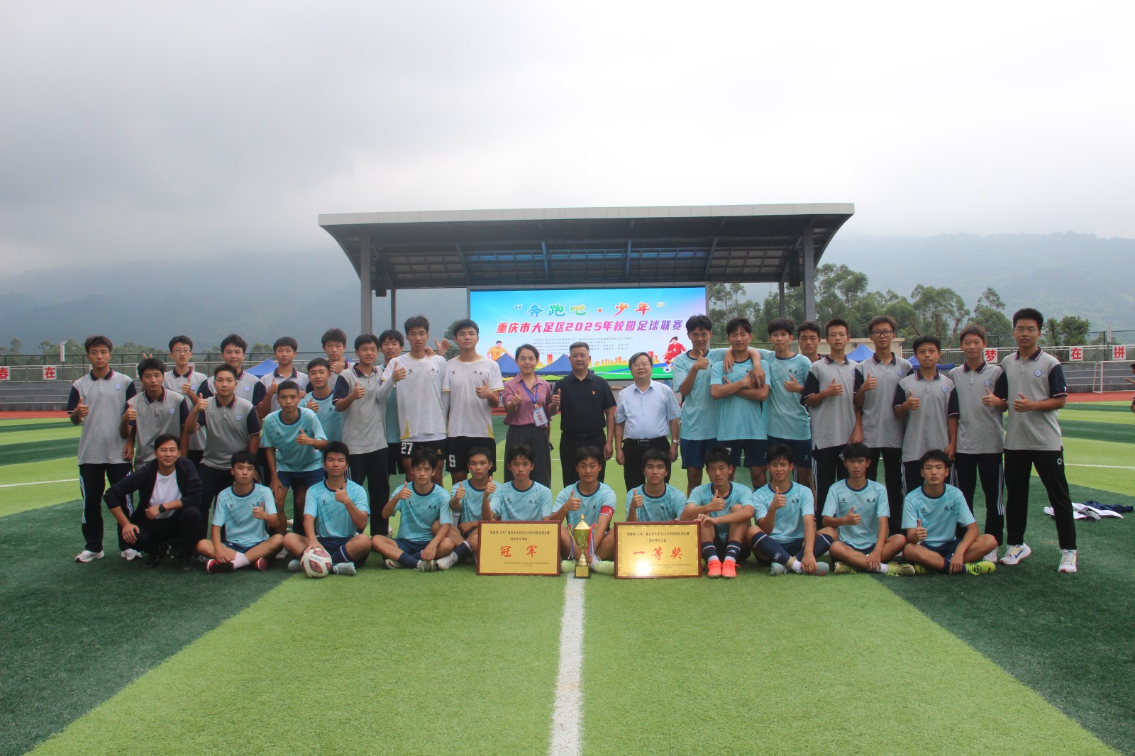 9月26日下午,大足区 2025 年校园足球高中男子组收官战在欢呼声中落下帷幕。全国青少年校园足球特色学校——重庆市双桥中学高中男子甲组足球队,以 6:1 的比分击败大足二中,不仅为赛事画上圆满句号,更以 “高中甲组全胜夺冠、乙组斩获亚军” 的 “双牌” 战绩,续写国家级足球特色学校的竞技辉煌,彰显素质教育育人实力。
