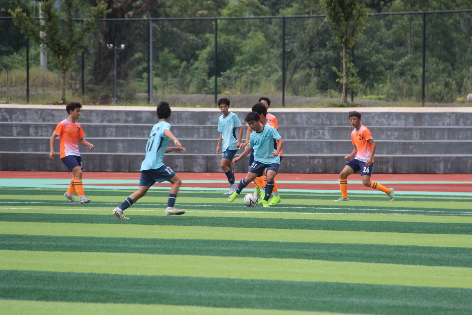 上半场,大足二中发起反攻扳回 1 球,双桥中学专职教练谷明朗迅速启用“边路突破 + 中场调度”战术 —— 这一战术源自学校“科学训练体系”:双桥中学坚持每周 3 次专业训练、寒暑假集中封闭集训,配备教练团队针对性打磨技术细节,最终以 6:1 锁定胜局,赛场上的战术执行力,正是特色学校标准化训练的生动缩影。